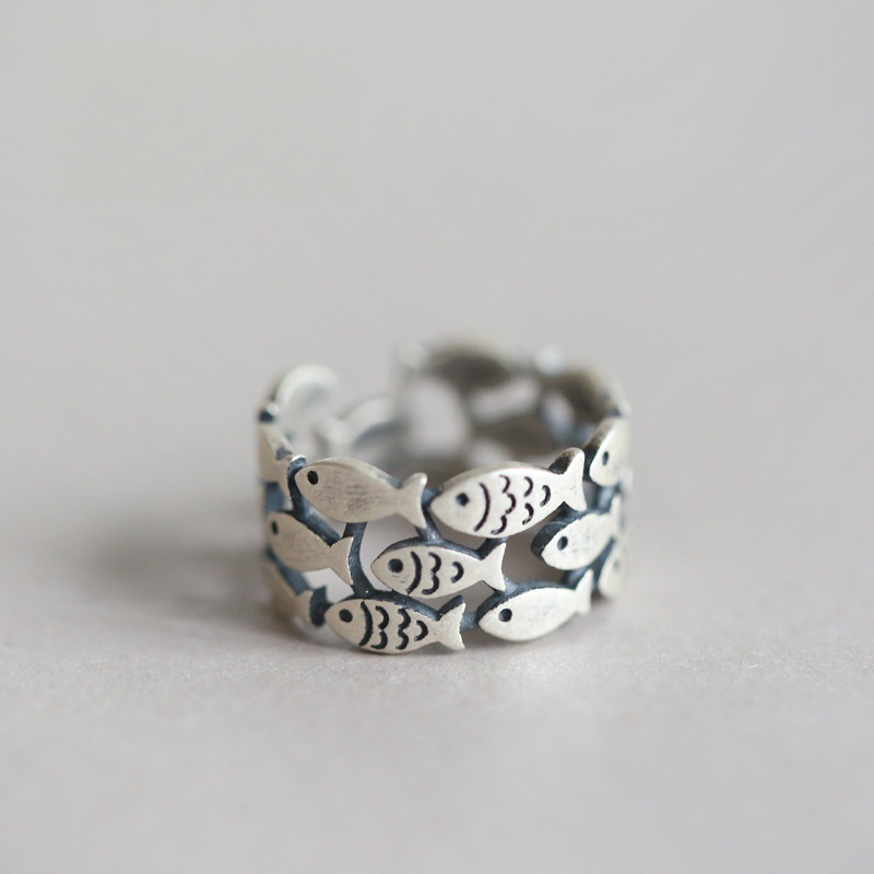 Mrs. Zeng Meng small fish cute swimming fish sterling silver s925 handmade ring opening adjustable ring birthday gift for women