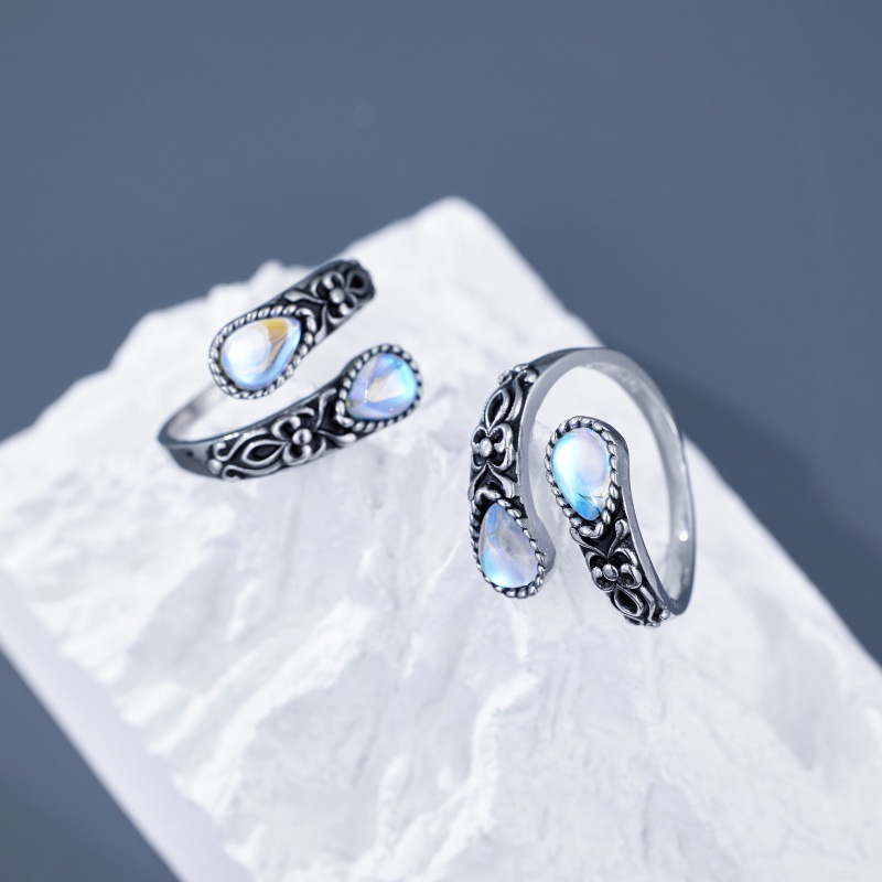Moonstone Natural Snake Retro Ring Carved Teardrop Adjustable Engagement Ring Moonlight Gem Jewelry for Men and Women