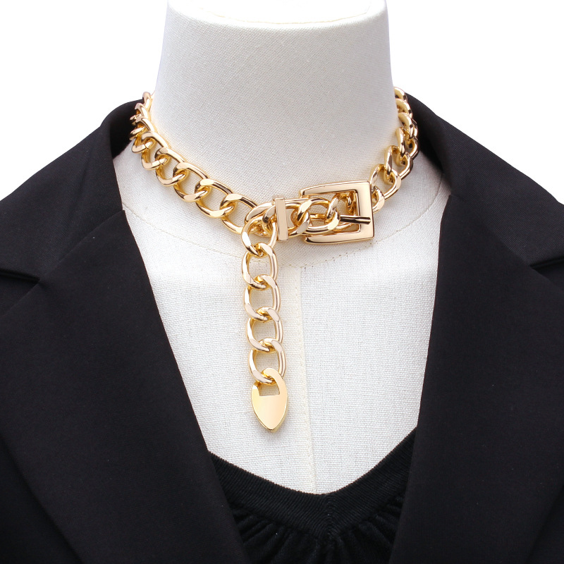 European and American cross-border hip hop simple design belt buckle chain clavicle necklace retro Cold style personalized necklace