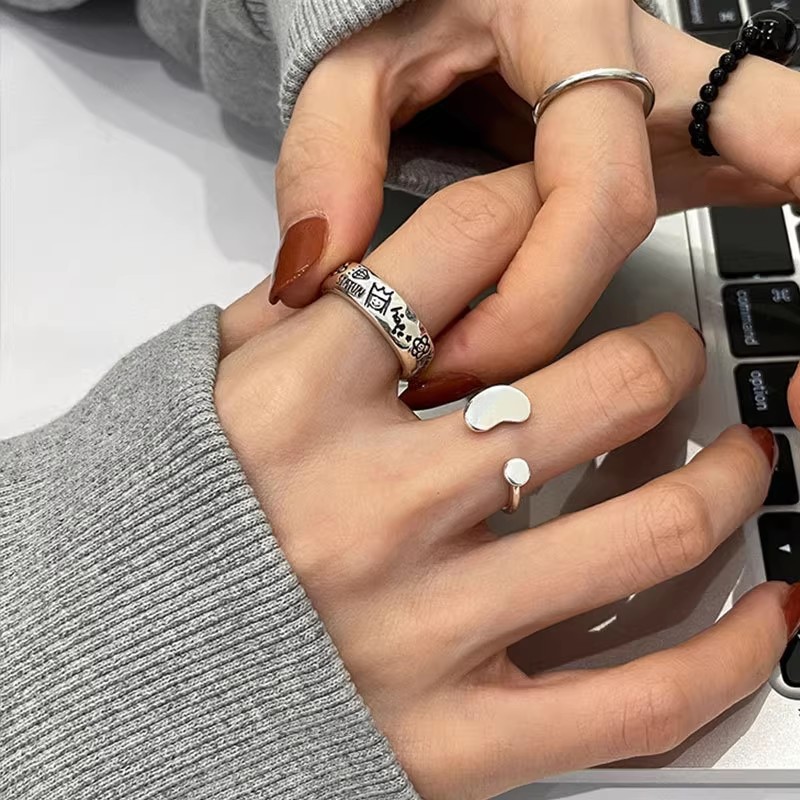 Korean and Japanese S925 Silver-Plated Personalized Graffiti Ring for Women, Vintage Fashion Geometric Irregular Open Ring Hip-Hop Index Finger