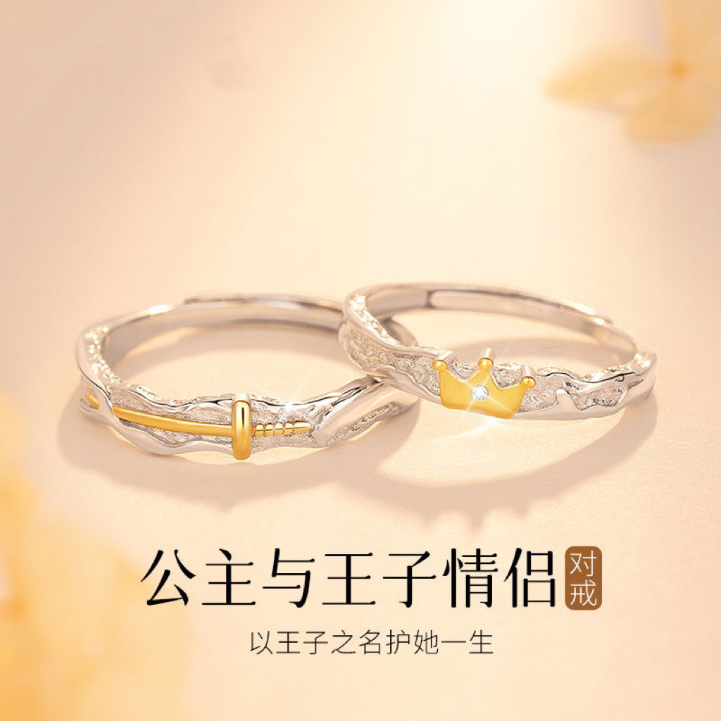 Vacuum Plating Princess and Prince Couple Ring for Men and Women A Pair of Internet Red Little Red Book Shake Tone Explosions Opening Ceremony