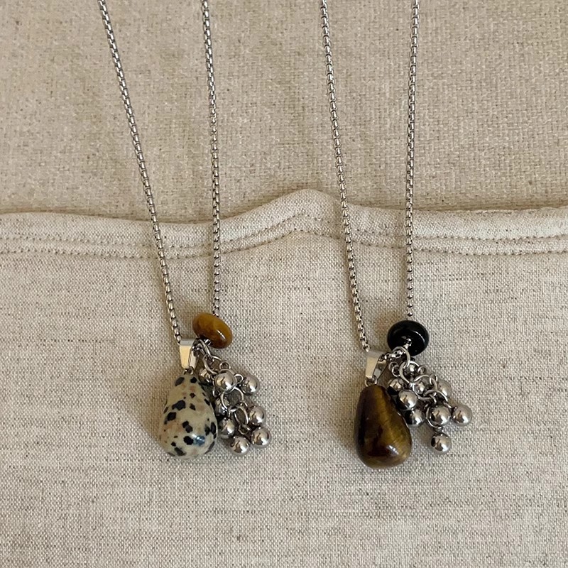 European and American Light Luxury New Maillard Tiger Eye Necklace Simple Fashion High-end Retro Niche Elegant Collarbone Chain