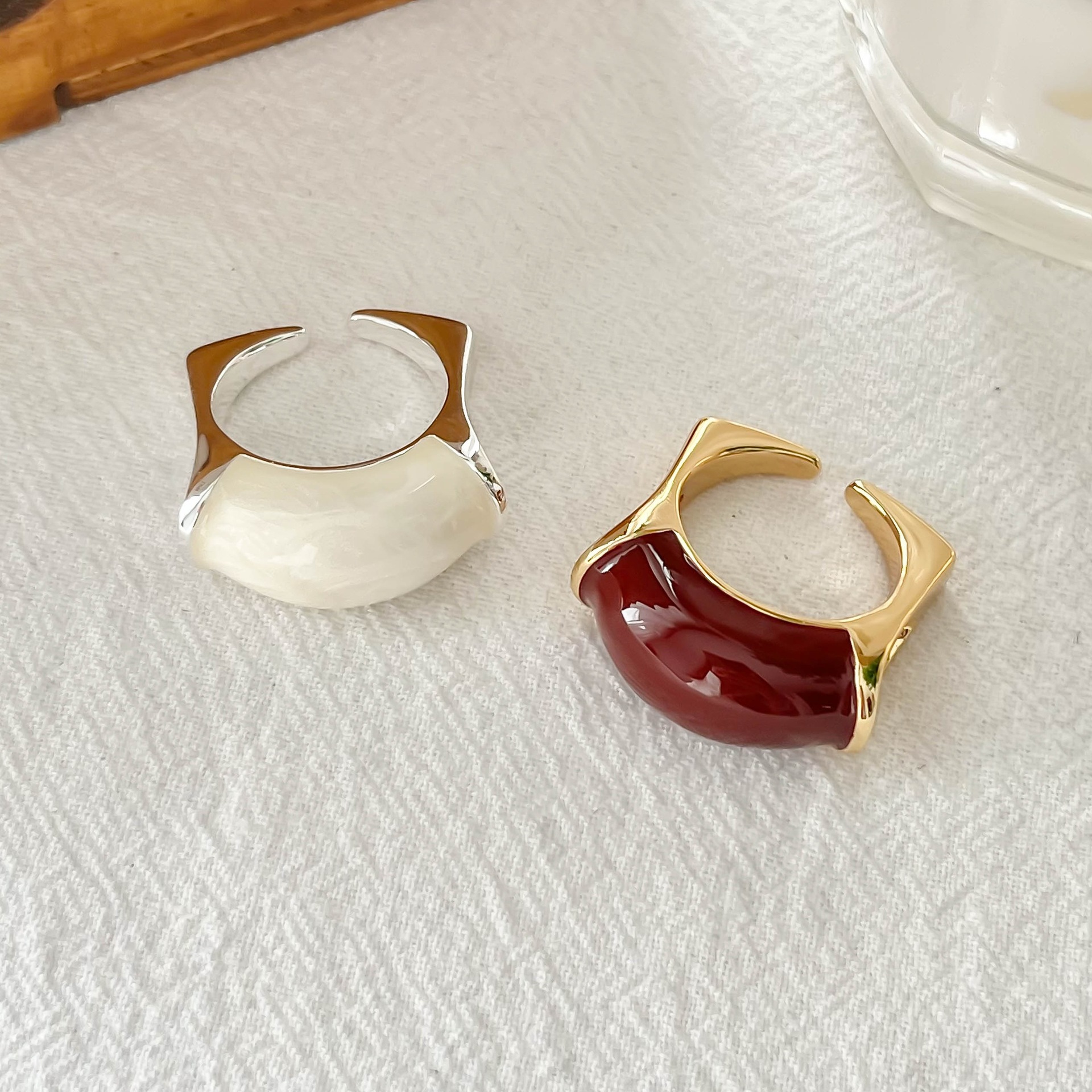Autumn and Winter Oil-Dropping Asymmetrical Curved Ring for Women, Simple Ins Niche Design, Retro Index Finger Ring Opening