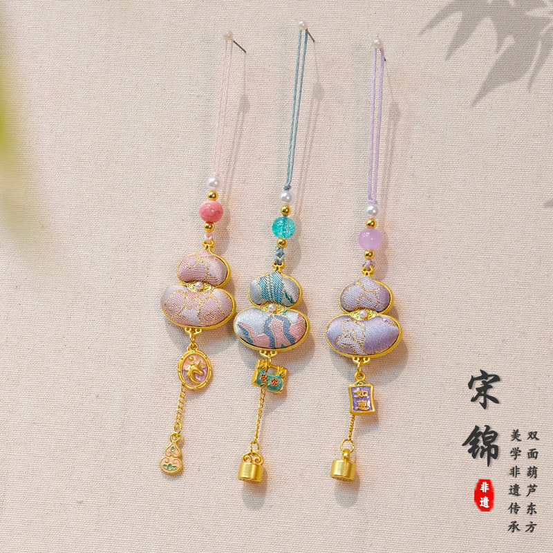 [Finished Product] Double-Sided Gourd Cheongsam Accessories, Handmade Song Brocade Pendant Bag, Trailer Hanging Mobile Phone Chain Pendant Pendant