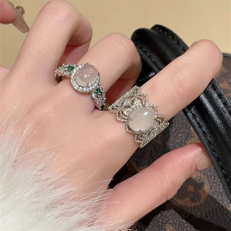New Chinese Style Vintage Simple Imitation White Chalcedony Ring Women's Niche Design Light Luxury Zircon Open Ring Wholesale
