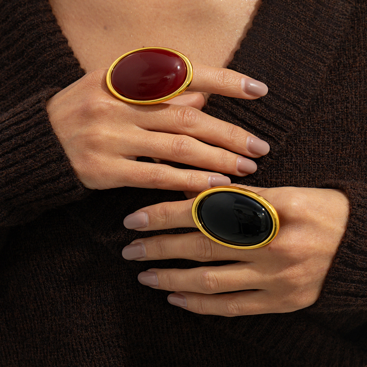 European and American Cross-Border New Style Exaggerated Metal Vintage Gemstone Ring, Unique Sweet and Cool High-End Open Ring