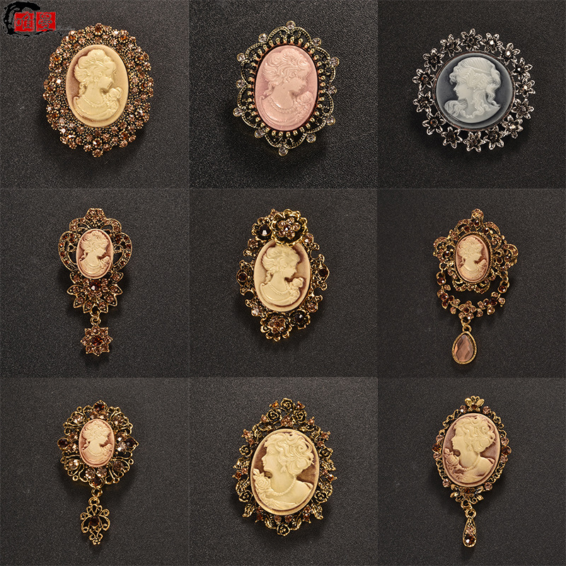 Beauty Head Gemstone Brooch European and American Retro Palace Fixed Pin Personalized Fashion Women's Clothing Jacket Accessories Jewelry