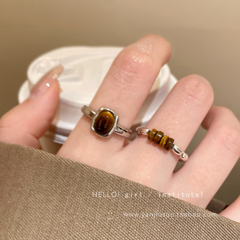 Maillard Tiger Eye Stone Ring for Women in Autumn and Winter, Unique Stylish, Fashionable Index Finger Ring, Retro Niche Design Open Ring