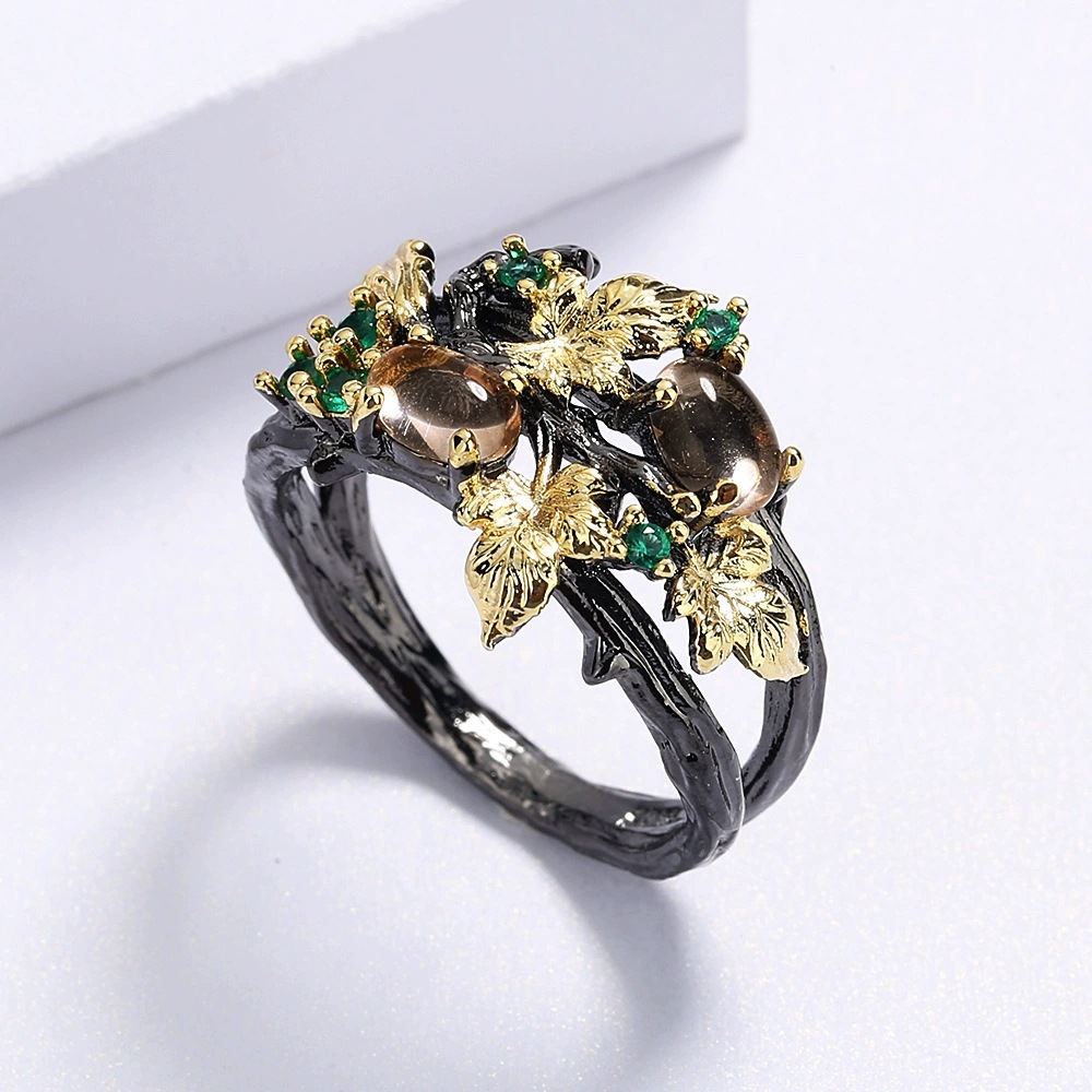 Cross-border New Double Color Leaf Fruit Ring European and American Retro Niche Personality Dark High-end Light Luxury Elegant Jewelry