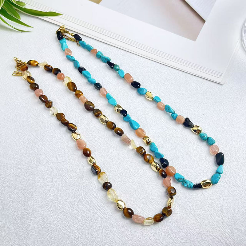 Niche Design Irregular caramel Beaded Necklace Vintage Natural Blue Turquoise Gold Bean Woolen Chain Autumn and Winter Explosions