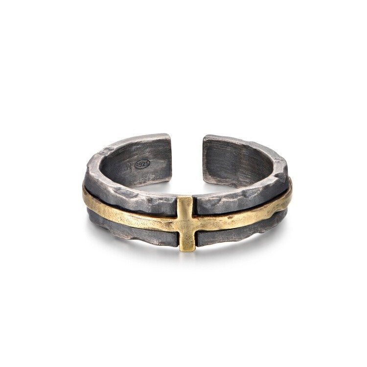 Broken Cross S925 Sterling Silver Set Brass Broken Cross Opening Ring Vintage Dressed Adjustable Ring