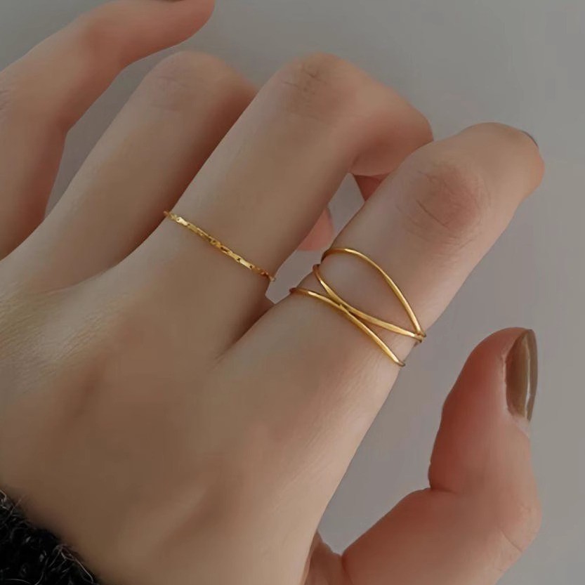 South Korea Dongdaemun fashion simple plain ring ring female niche design temperament retro geometric cross ring