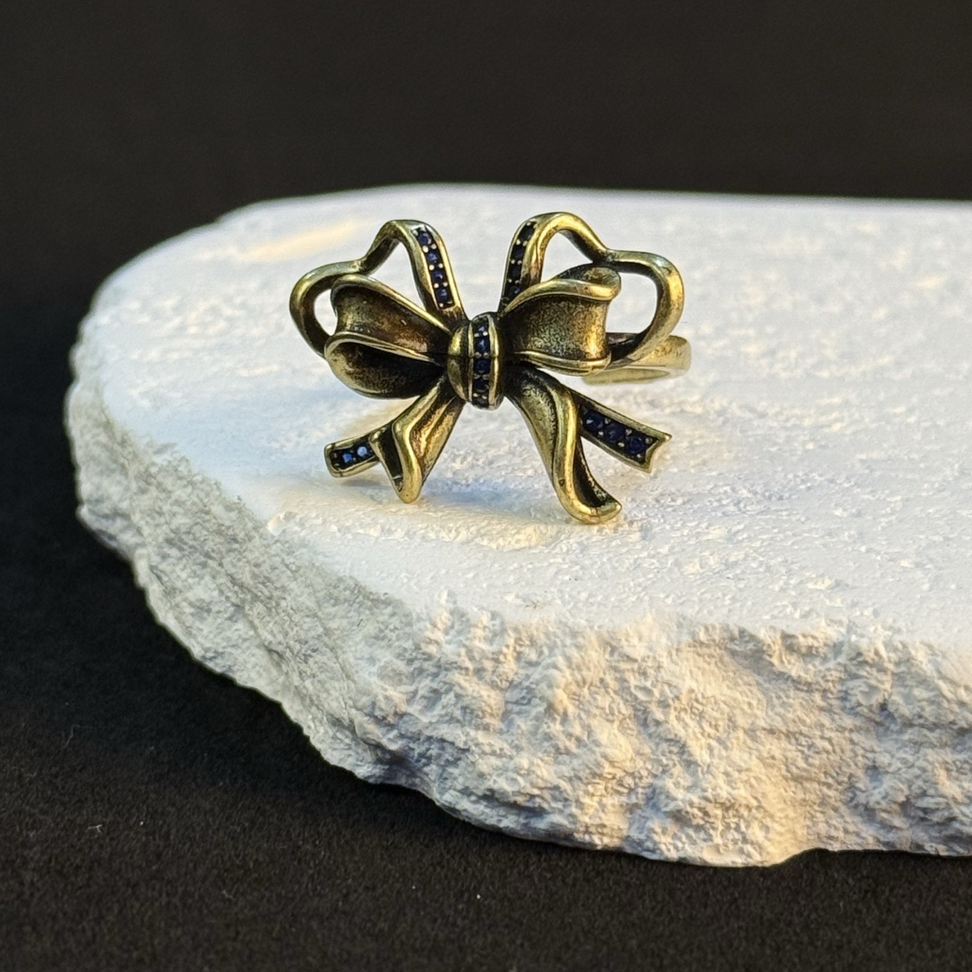 European and American Retro Niche Design Sense Zircon Micro-inlaid Full Diamond Ribbon Bow Delicate High Sense Open Ring for Women