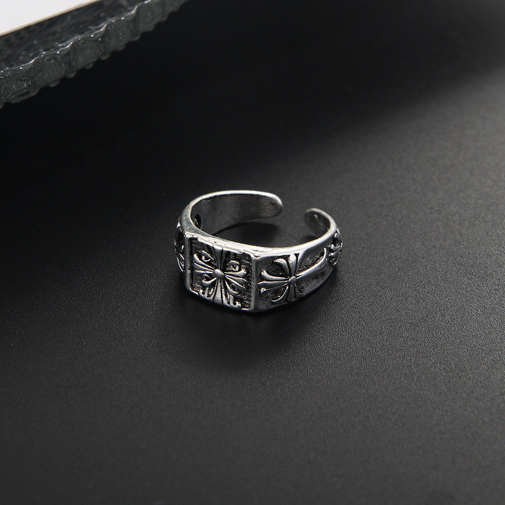 Cross-border Hot Sale Wholesale Vintage Cross Ring Men's Trendy Hip Hop Fashion Cross Pattern Open Ring