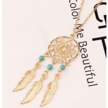 Fashionable European and American Dream Catcher Retro Necklace Feather Turquoise Clavicle Pendant Temperament Necklace