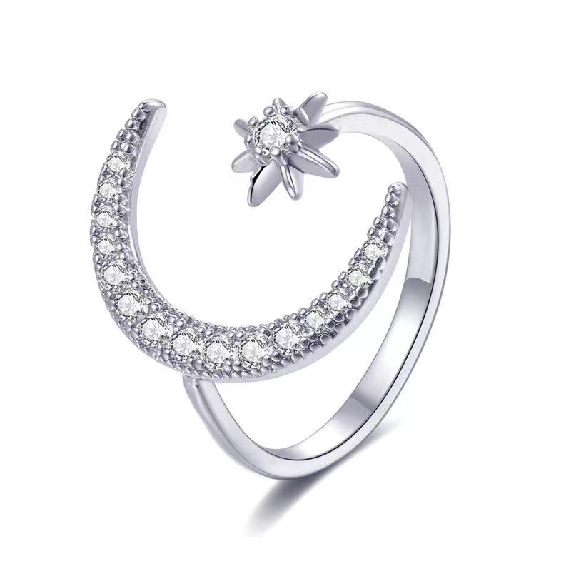 Cross-border Hot Star and Moon Ring European and American Fashion Crescent Ring Ethnic Star and Moon Ring with Index Finger Opening