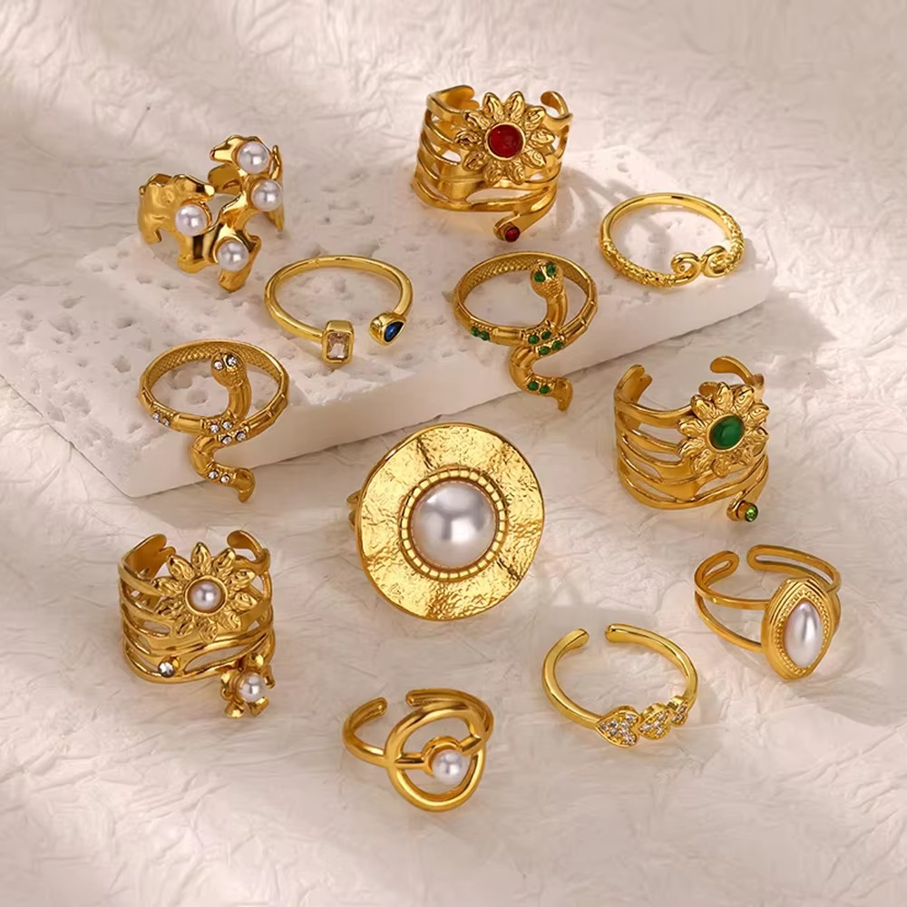 Cross-border Retro Court Style Imitation Pearl Stainless Steel Love Ring French Elegant Light Luxury Ring Jewelry