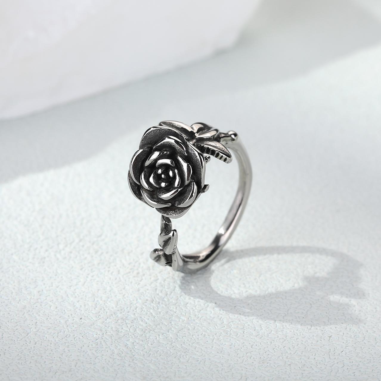 Retro Rose Flower Ring for Men and Women, Retro Simple and Exquisite Fashionable Titanium Steel Old Design Live Ring