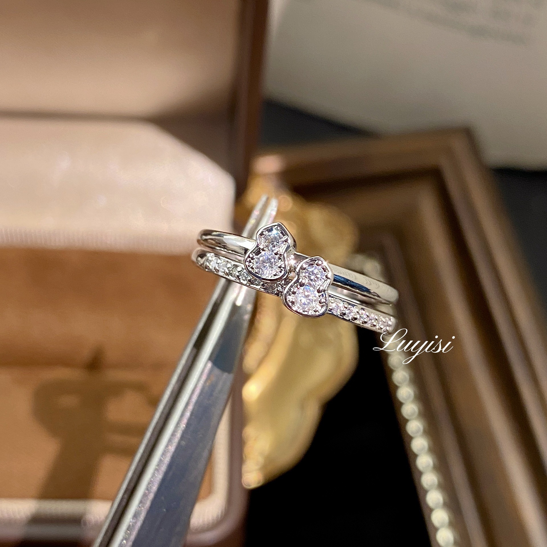 New Chinese Style Small Gourd Set Ring Two-In-One Fashion Light Luxury Simple Female Personality Diamond-Studded Stacking Ring Food Ring Wholesale