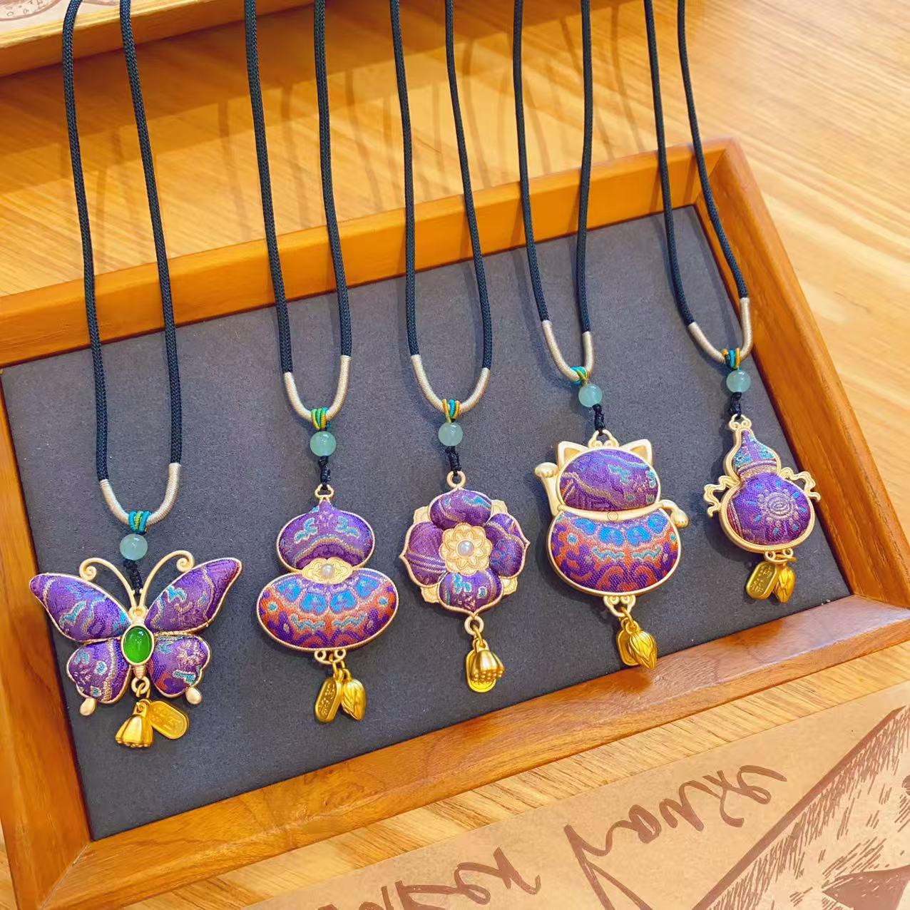[Finished Product] Intangible Cultural Heritage Silk Song Brocade Gourd Necklace Mulberry Silk Double-Sided Butterfly Pendant Long Sweater Chain Gift
