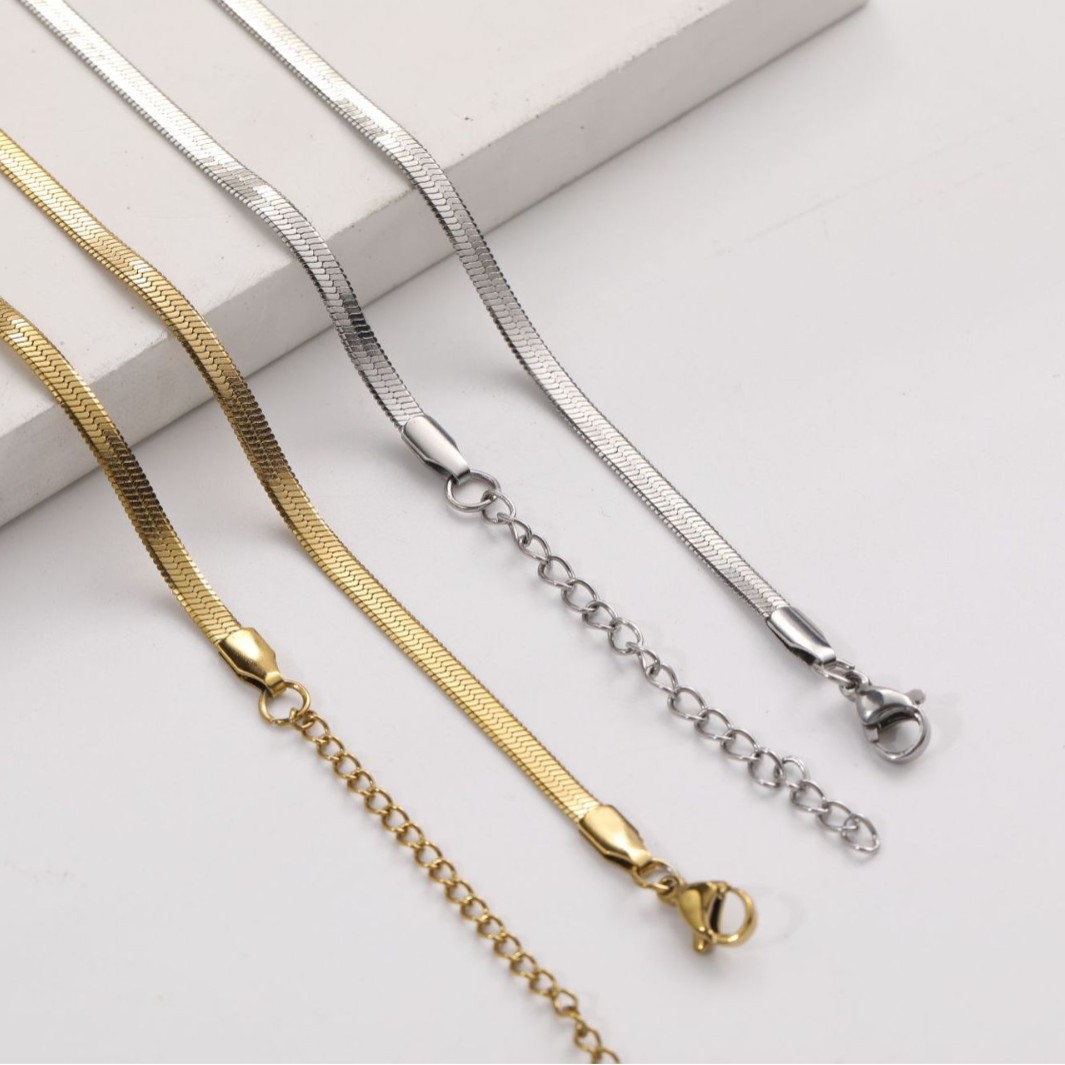 Cross-Border Stainless Steel Necklace Titanium Steel Gold Flat Snake Chain Women's Retro Personality European and American Style Fashion Simple Jewelry Accessories