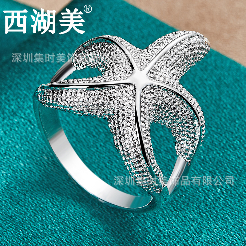 West Lake Beauty Fashion Trend Retro Five-Pointed Star Ring Female Personality Marine Wide Starfish Ring Factory Direct Sales