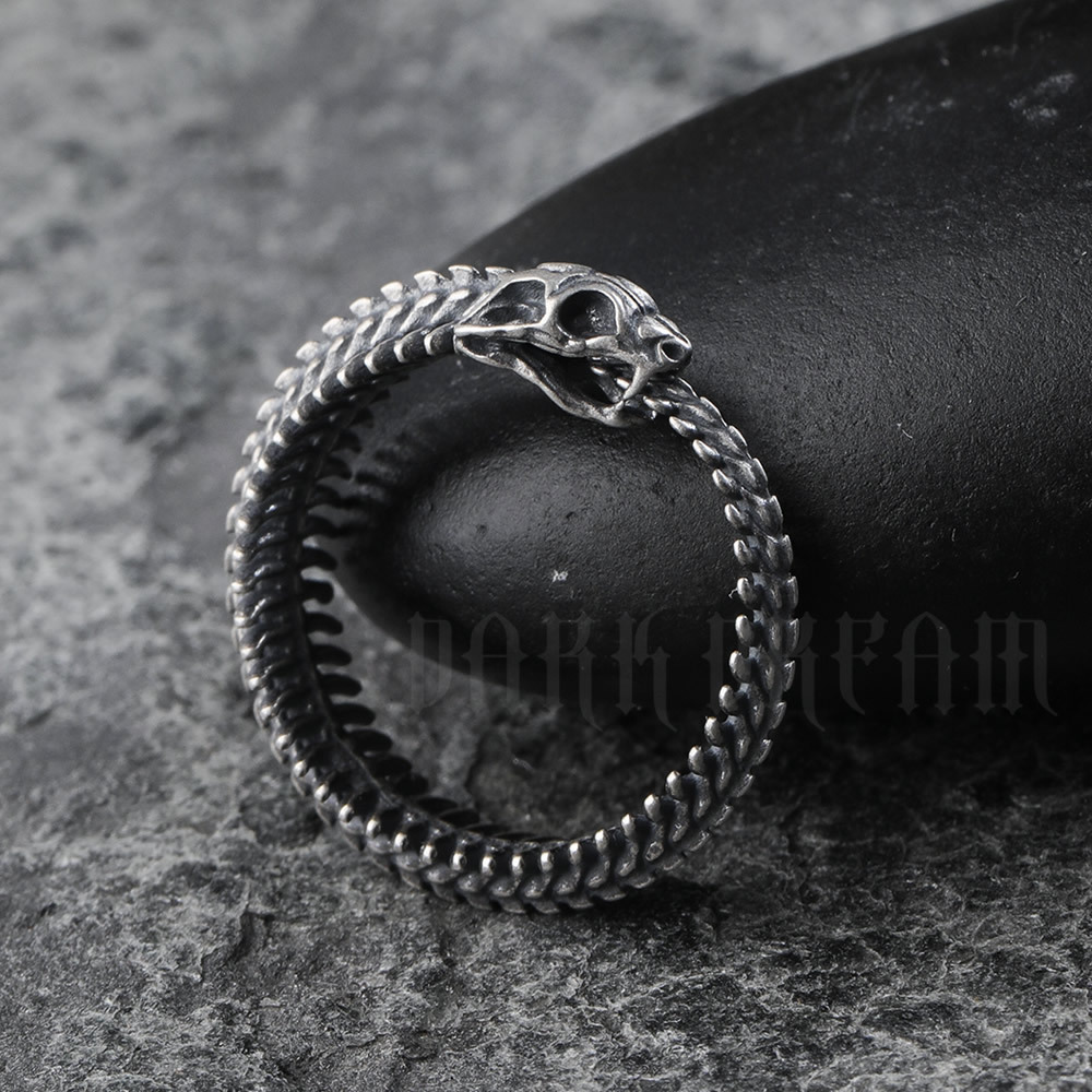 Darkdream S925 Sterling Silver Snake Bone Ring Punk Old Retro Skeleton Ring Live Mouth Adjustable