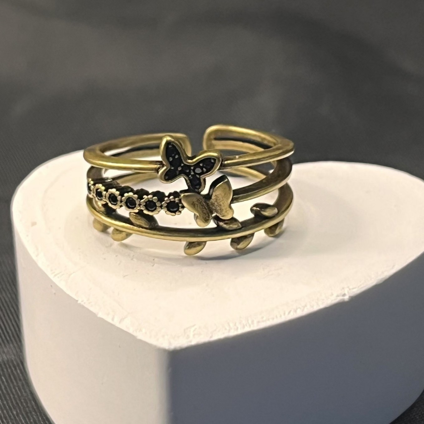 Black Zircon Two Butterflies Light Luxury Elegant All-match Electroplated Black Gold Butterfly Ring Niche Design Ring Opening