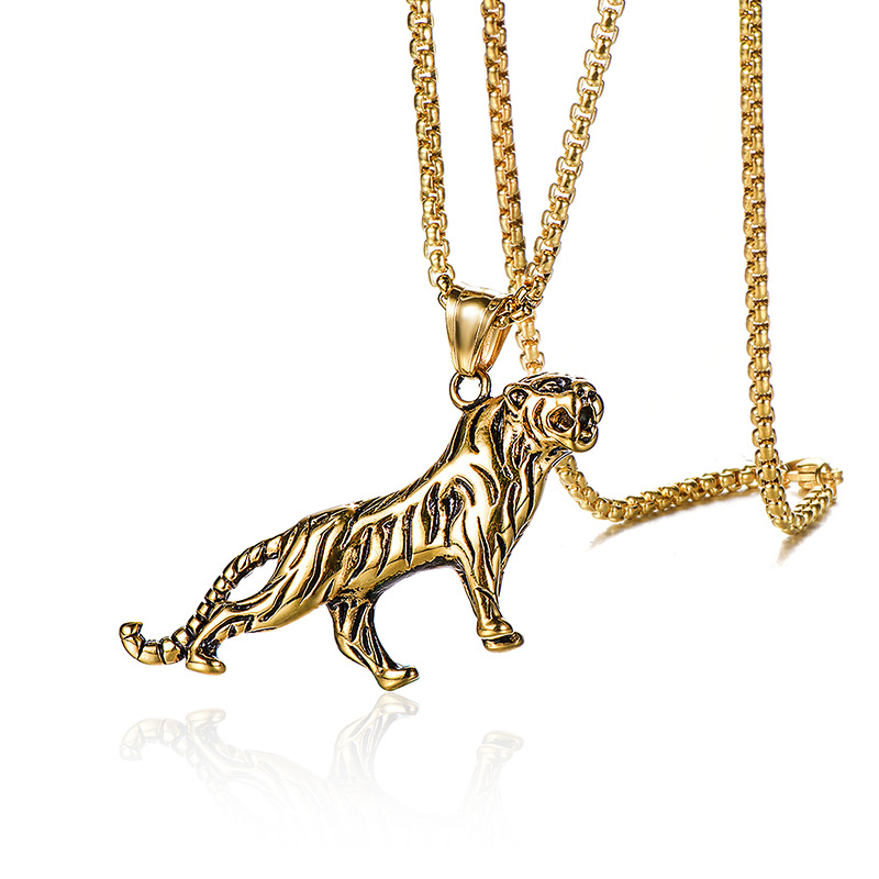 Stainless steel twelve zodiac Tiger Men's titanium steel necklace personality cross-border new cast mountain Tiger pendant jewelry