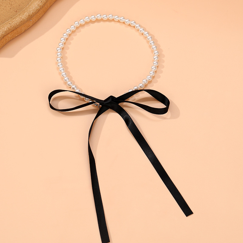 European and American cross-border jewelry retro French court pearl necklace elegant simple diy flannel bow necklace