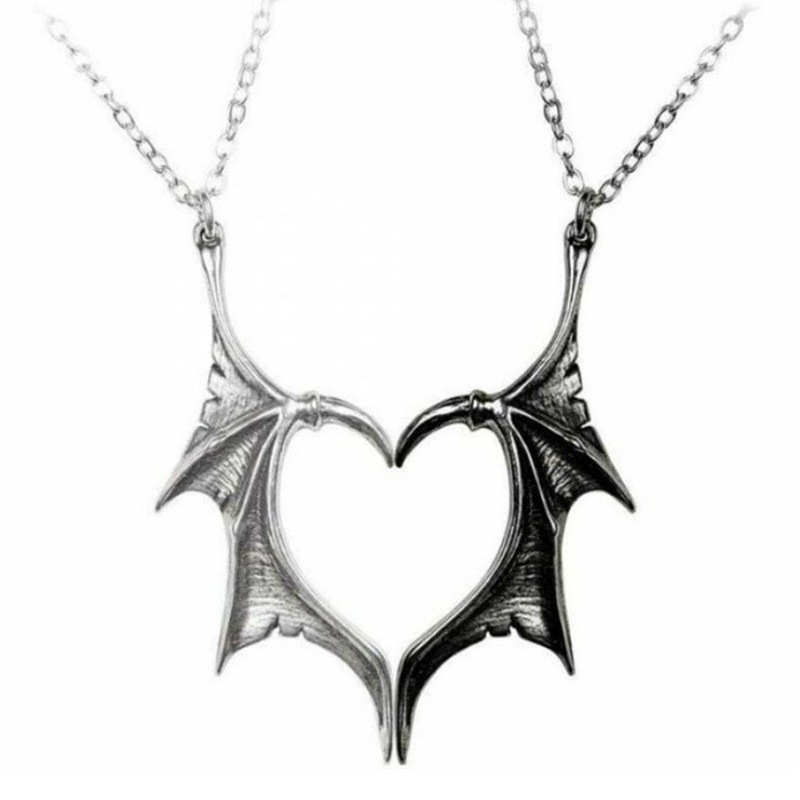 Cross-border European and American Gothic Demon Wings Necklace Vintage Punk Bat Heart Alloy Pendant Couple Necklace