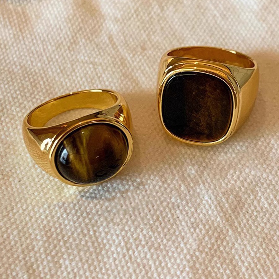Maillard style mid-ancient jewelry imitation Tiger Eye gem ring female European and American retro light luxury niche design Golden Ring