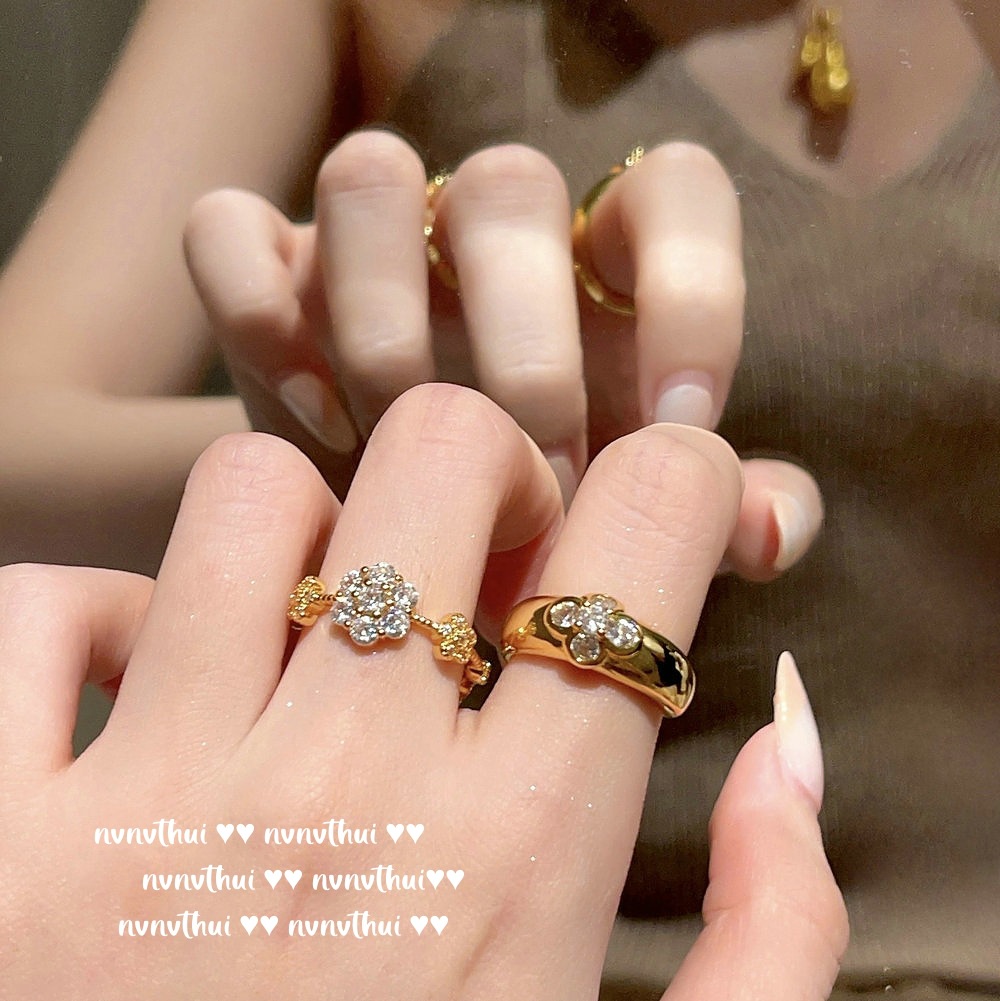 Italian Vintage Curved Flower Gem Ring Vintage Plated 18K Gold Sunflower Zircon Ring Overlapping
