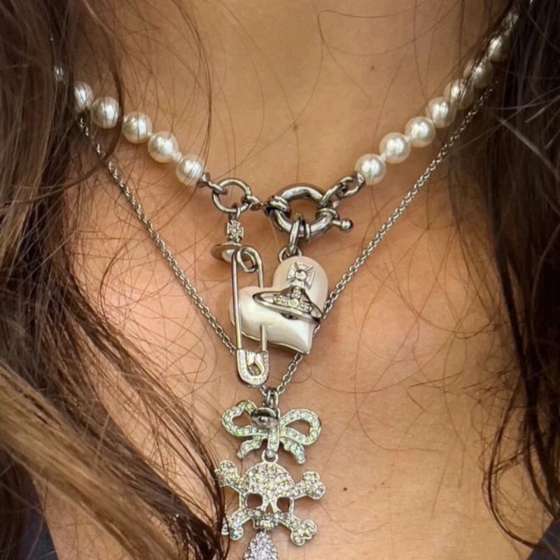 Vivian Saturn Pearl Love Pin Irregular Necklace Women's French Retro Niche Peach Heart Clavicle Chain