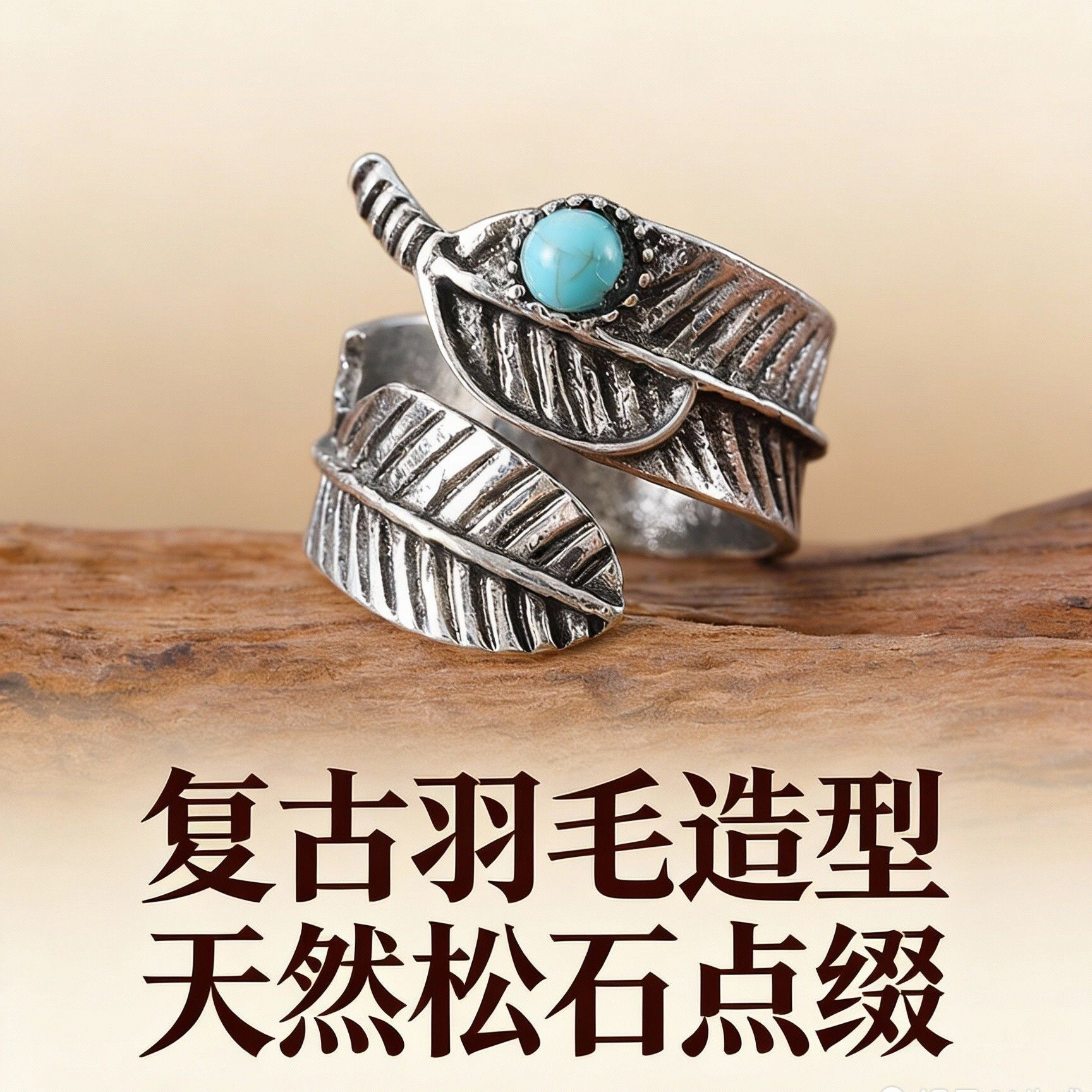Cross-border personality retro leaf turquoise opening adjustable ring new national style trend old ring