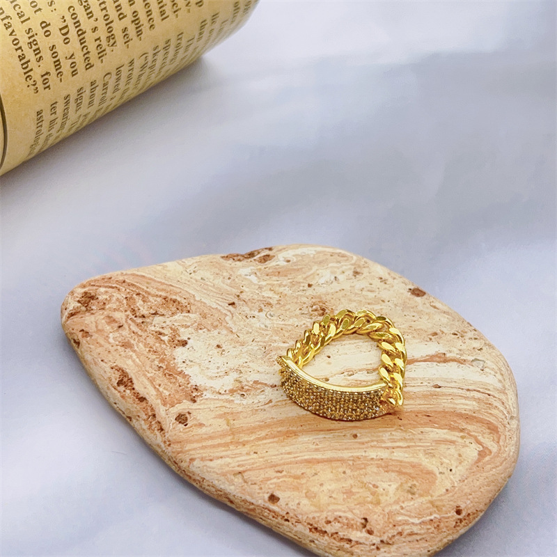 French Retro Soft Chain Micro-inlaid Zircon Ring for Women ins Trendy Internet Popular Fashion Cold Style Open All-match Ring