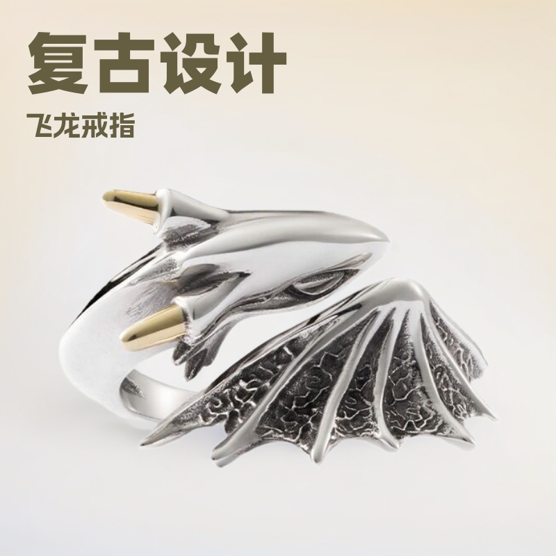 Retro Childlike Funny Little Monster Flying Dragon Ring Sense of Design Stylish Design Dark Style Ins Trendy Dragon Ring Factory