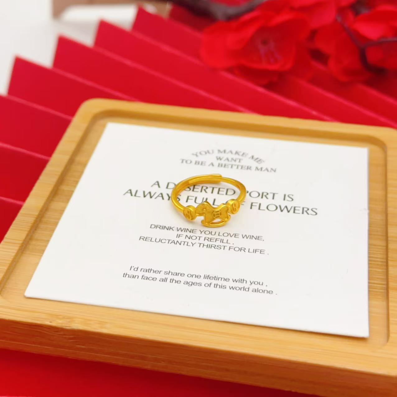 Xiaohongshu's Popular Niche Design, Get Rich Immediately, Ancient Imitation Gold Light Luxury High-End Ring, One Piece Drop Shipping