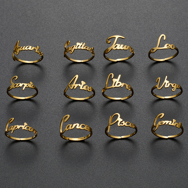 Europe and the United States cross-border retro 12 constellation ring 18K stainless steel Joker geometric love open ring jewelry wholesale
