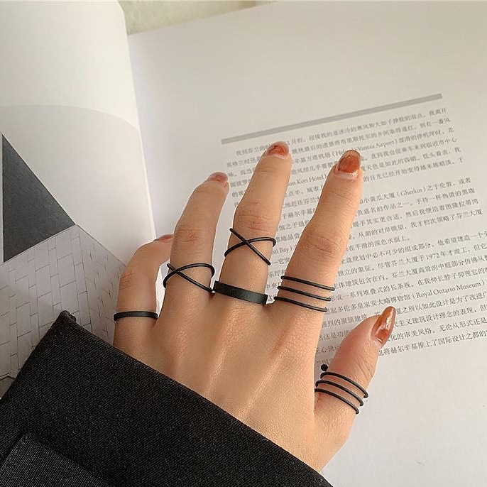European and American Foreign Trade Open Geometric Cross Ring Retro Personalized Six-piece Metal Index Finger Ring Set Ring
