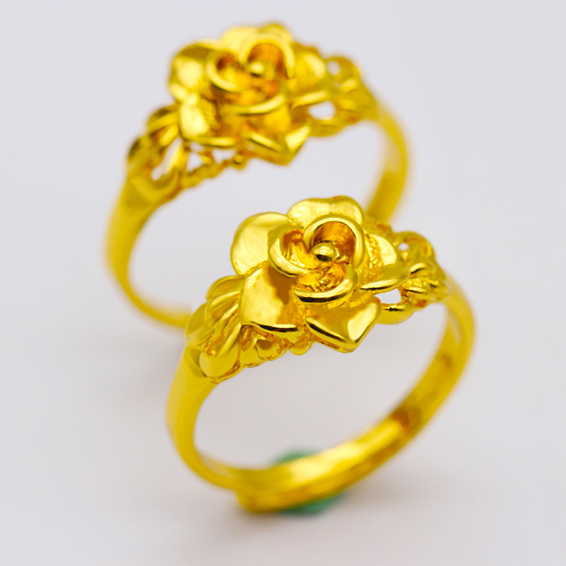 Vietnam Sand Gold Flower Open Ring Women's Imitation Gold Simple Vintage Women's Ring Brass Gold Plated Ring Ring Sand Gold