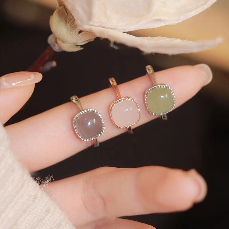 Sugar Cube Ring for Women Xiaohongshu Retro Niche Design Normcore Artificial Jade Index Finger Ring
