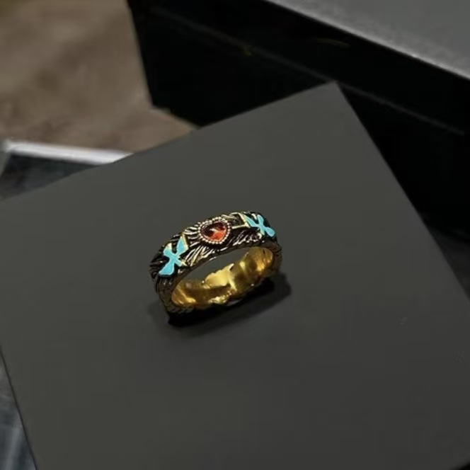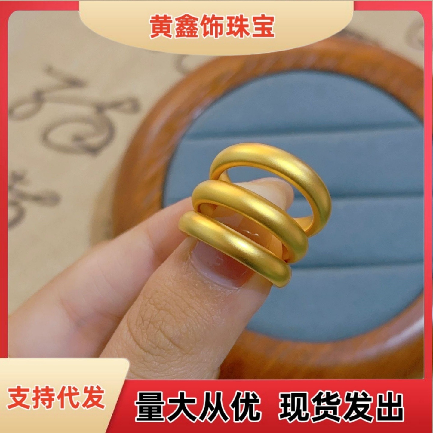 Gold Shop Same Style Loach Back Ring Women's Gold Saute New Chinese Style Vintage Frosted Closed 4N Quilt Ring Finger Ring Copper Gold Plated