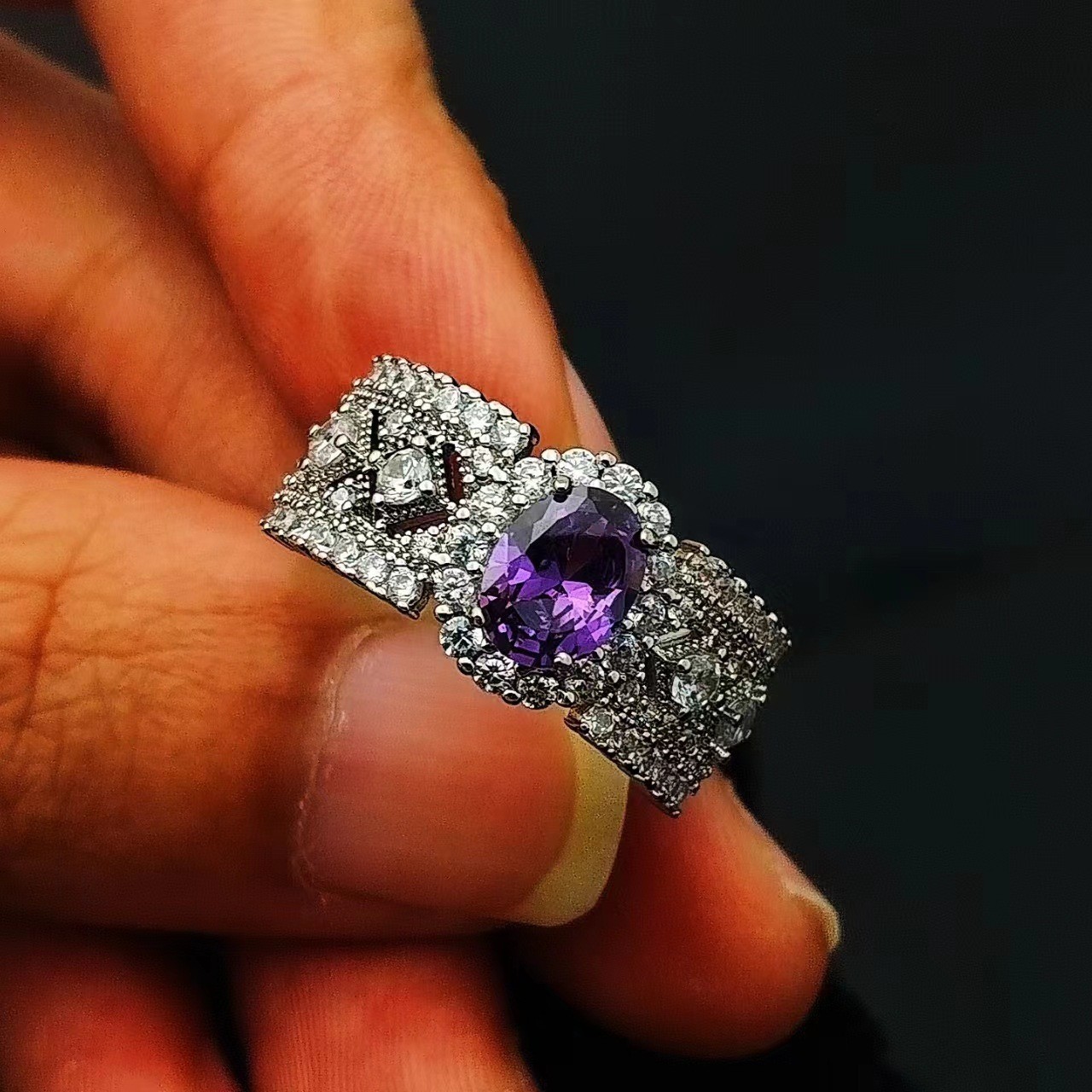 Minimalist Cross Kaleidoscope Purple Diamond Rose Open Ring for Women, Fashionable Versatile Punk Style with a High-End Feel Index Finger Ring