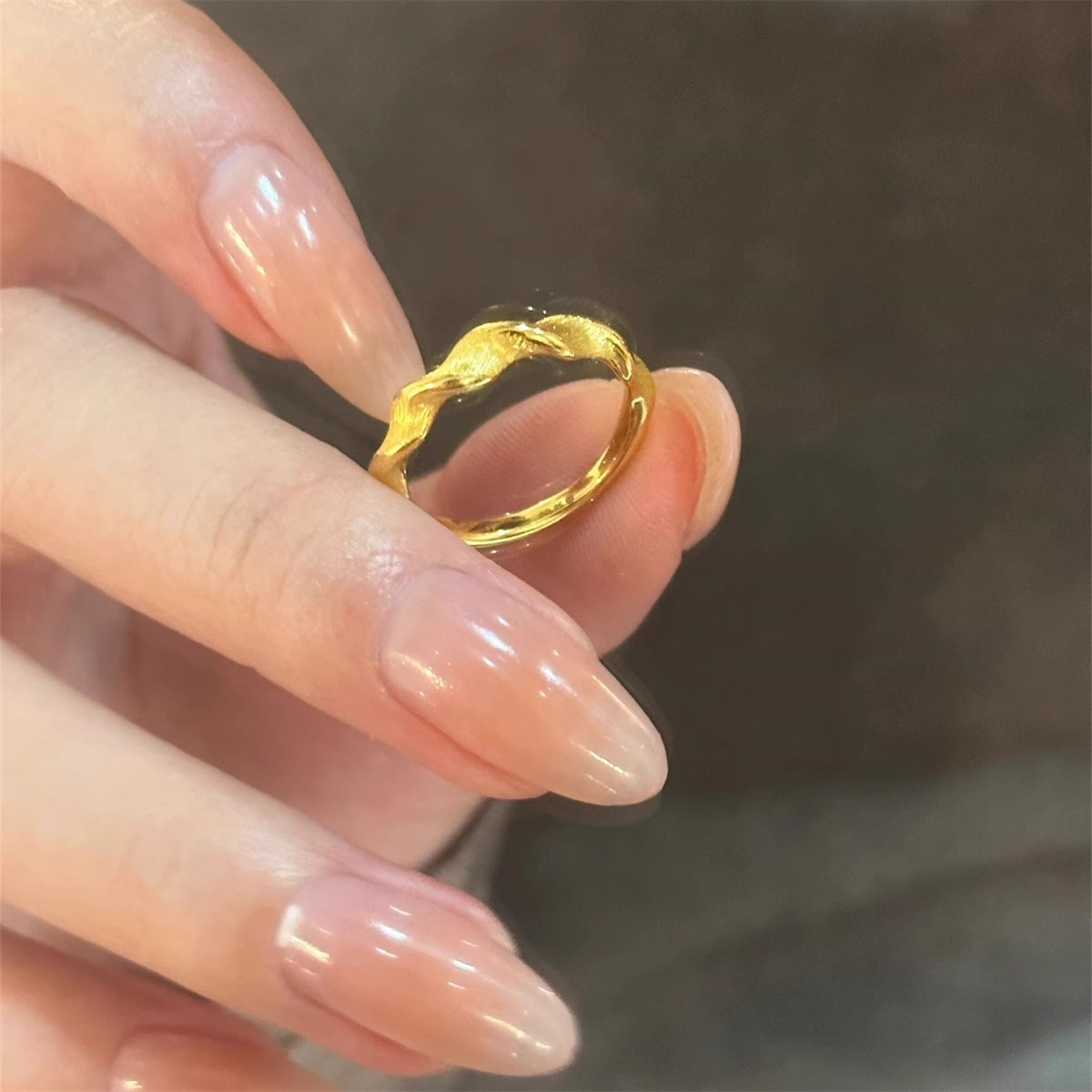 Titanium Steel Gold-Plated Irregular Glossy Ring for Women Wave Abstract Retro Simple Cold Style Fashion Index Finger Ring