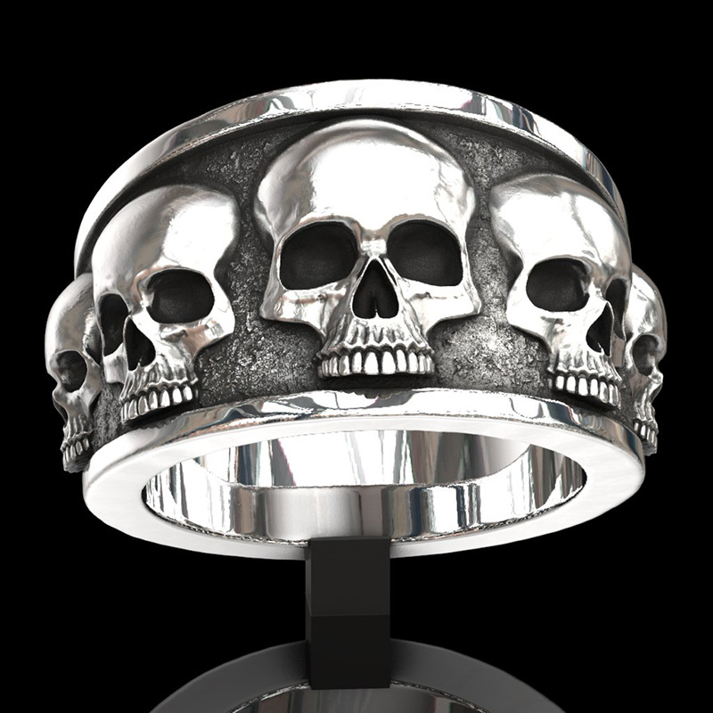 Sanjie Cross-border Explosions Accessories European and American Foreign Trade Personality Punk Skull Ring Men's Exaggerated Retro Jewelry