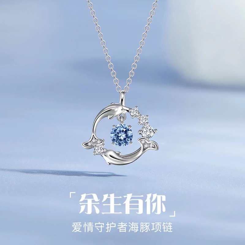 Yusheng Has You Smart Zircon Necklace for Women Douyin Live Broadcast Imitation Moissanite Dolphin Pendant Clavicle Chain Jewelry Wholesale