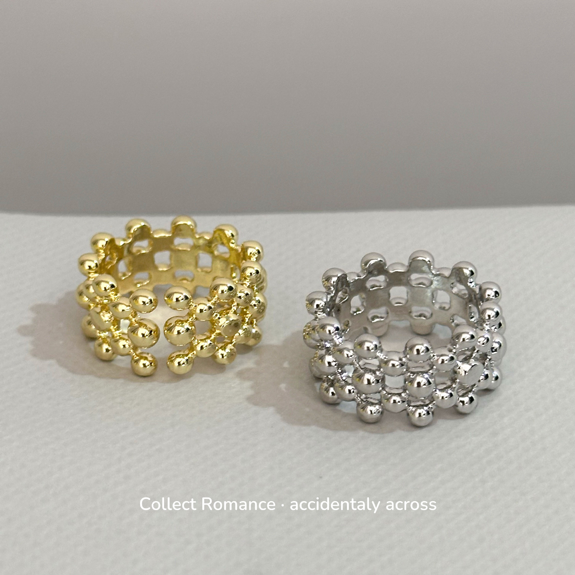 Korean Niche Design Glossy Ball Gold and Silver Open Ring French Handmade Art Opening Adjustable Ring for Women