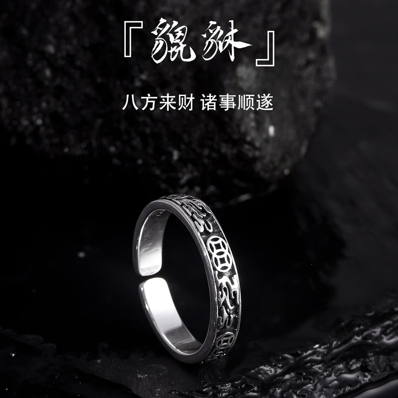 Pixiu Ring for Women, Vintage Chinese Style, High-End, Exquisite Relief, Distressed Ring Style, Niche Design, Index Finger Ring