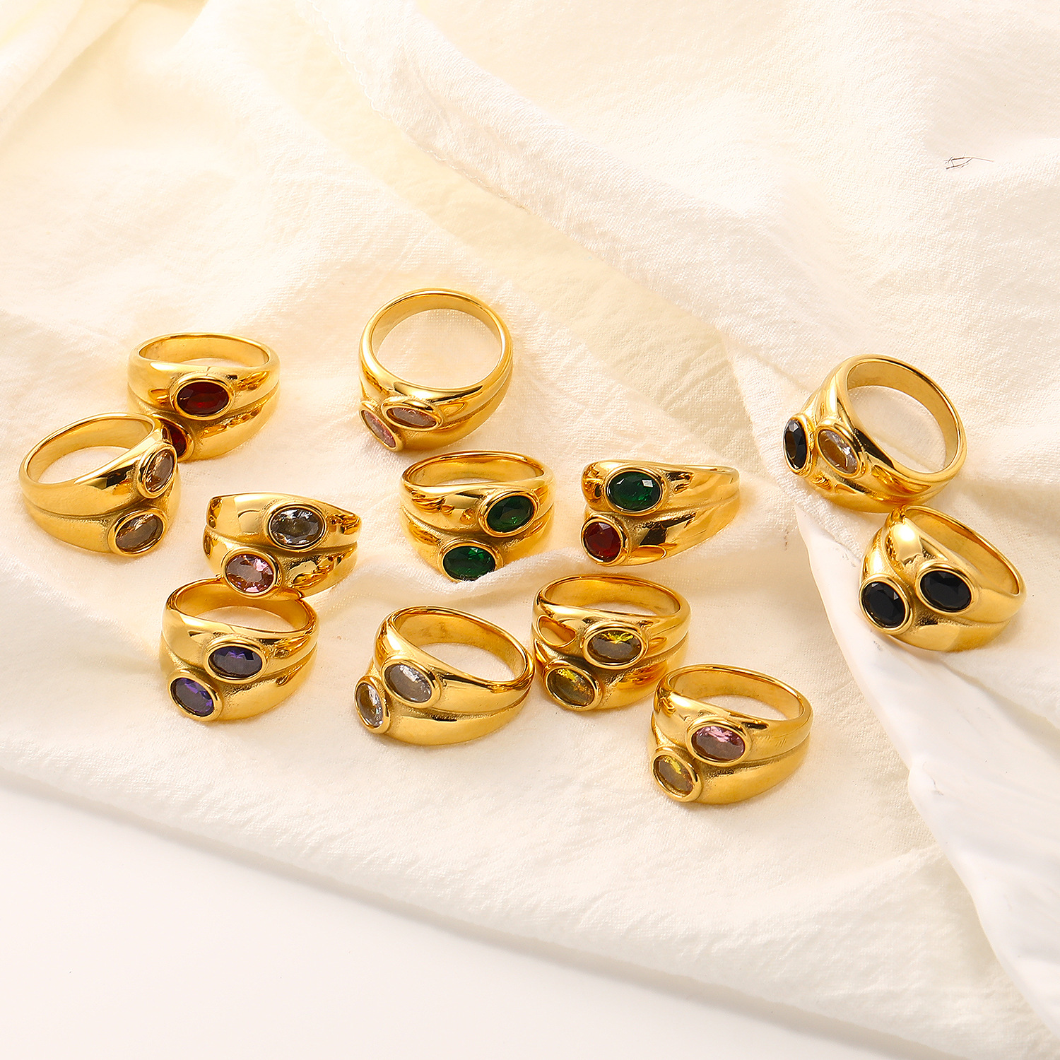Europe and the United States hot-selling ins personality retro double-layer fashion inlaid zircon titanium steel Women's ring temperament 18K Gold Tide ring